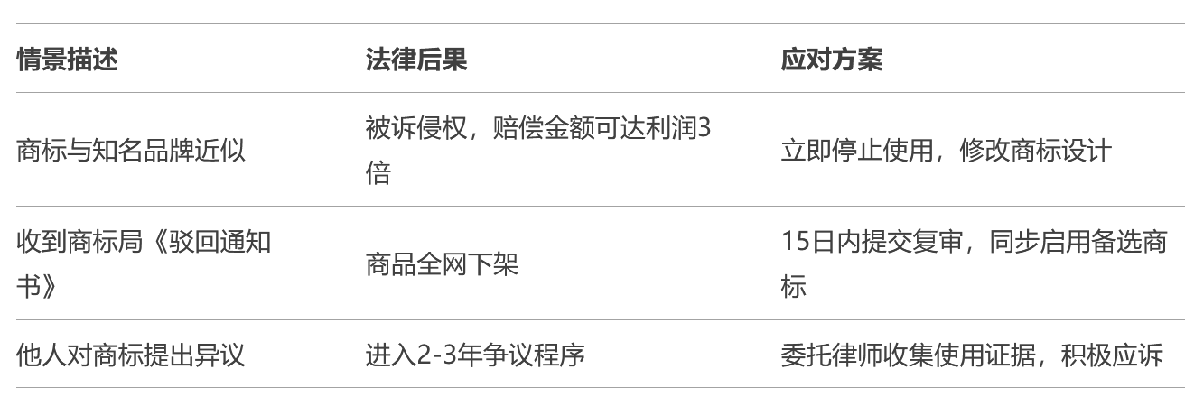若商标最终被驳回,已生产的产品需紧急撤换标识,电商平台链接可能因“售假”被删除,甚至面临消费者索赔(如认为品牌虚假宣传)。