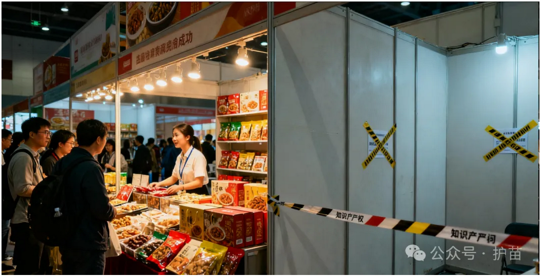 每年,在全国各地的食品展、糖酒会上,我们都能看到一些令人惋惜的场景:一家布置精美的展位前,突然来了主办方和知识产权局的工作人员,要求企业立即遮盖品牌Logo、下架热销产品、撤除宣传资料……原本门庭若市的展位瞬间冷清,商机尽失。