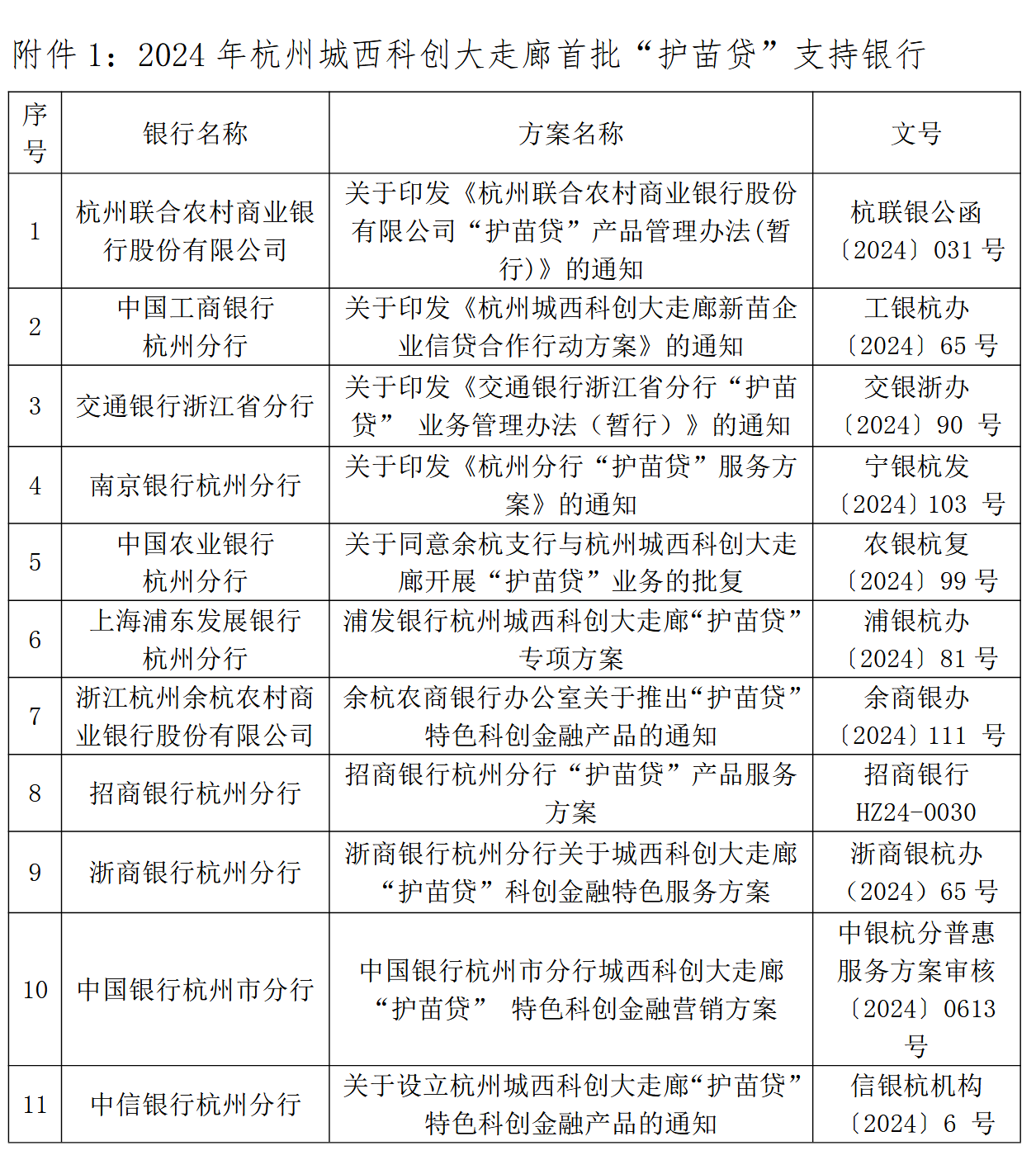 附件1:2024年杭州城西科创大走廊首批“护苗贷”支持银行.pdf