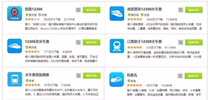 当小伙伴们在应用商城搜索 12306时,会非常“惊喜”地发现一大批“12306”。这些 App 下载量从几万到几千万(未标明“官方版”的累计下载量超过一千万),零零总总的有几十个,不但名字类似,图标、颜色也大同小异……而搜索 12123、公积金等其它官方软件后,也出现了类似情况。