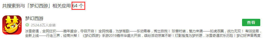 比如:搜索网易的“梦幻西游”,随随便便都能出现几十个类似的游戏应用。